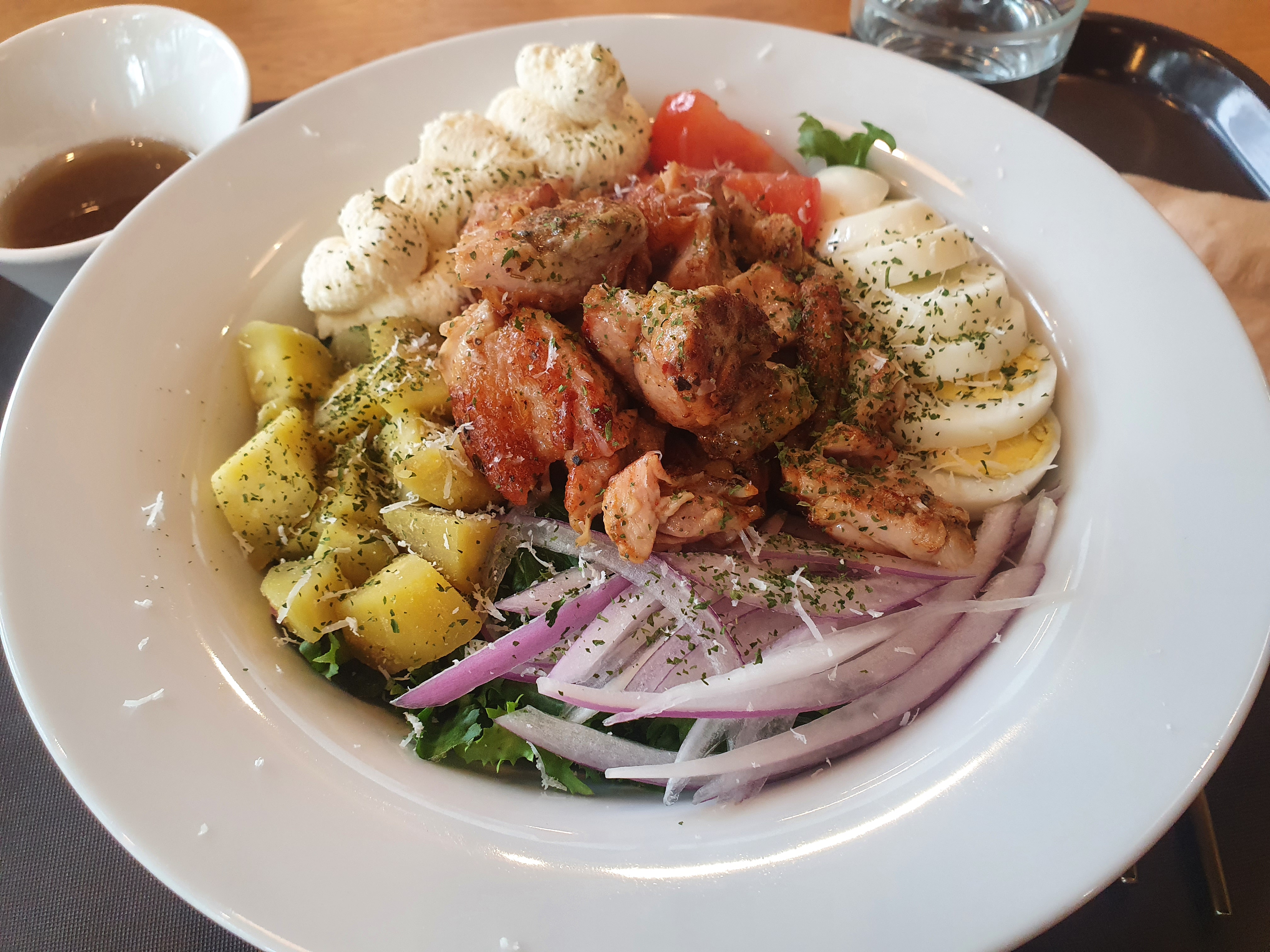 회사 점심시간에 자주 방문하는 끼니위드에요. 평일에는 비교적 건강하게 먹으려고 노력하는 편인데요. 마침 근처에 건강한 샐러드 맛집이 있어서 호기심에 방문했다가 일년 가까이 정착중인 곳이에요! 채소는 항상 곁들여 가며 의무적으로 먹었었는데 애기입맛인 저에게 채소를 꾸준히 먹인 무시무시한 샐러드 맛집👍 사진속의 메뉴처럼 제가 자주 주문하는 건 치킨아보카도 샐러드에요! 저는 탄단지 비율을 위해 아보카도를 고구마로 변경해서 주문해요. 왼쪽 상단에 보이는건 리코타 치즈인데 저건..제가 치즈를 못 잃기 때문에..사랑해요 치즈💖.